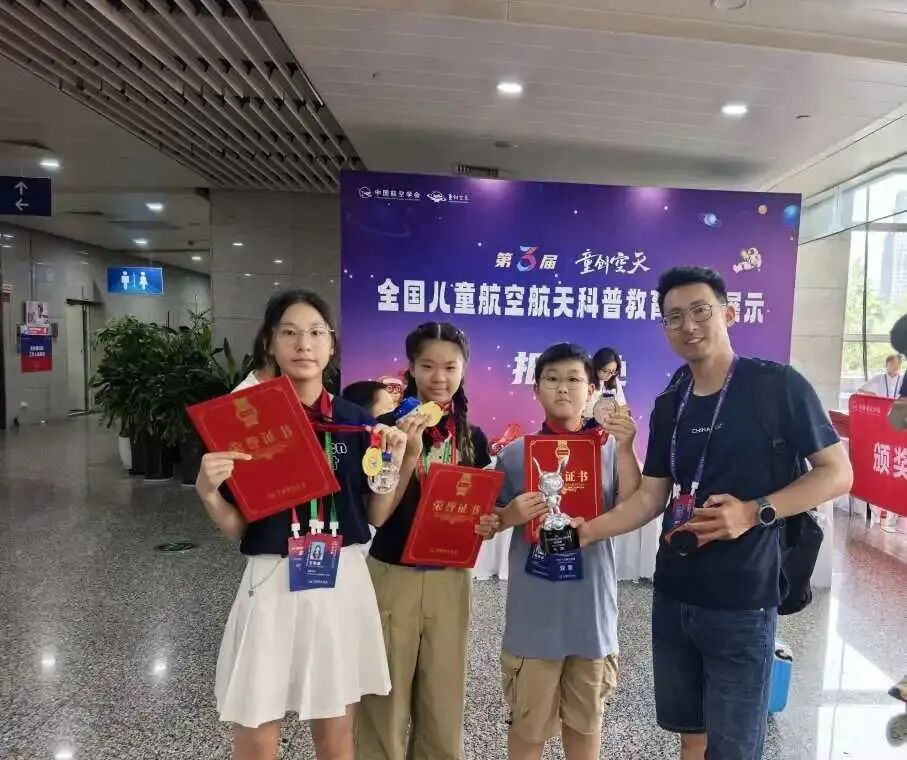 这枚沉甸甸的奖牌,凝聚着三位小队员无数个日夜的心血与汗水。从创意构思的头脑风暴,到图纸绘制的严谨细致;从零部件的精心挑选与组装,到无数次的调试、试飞与改进,他们不仅展现了对航空知识的深刻理解和动手实践能力,更体现了团队协作的默契与面对挑战时的沉着冷静。他们用智慧和双手将梦想付诸实践,用创新思维点亮了科技的火花,充分展现了公司学员的卓越风采,也为我们树立了青少年科技爱好者的优秀典范!他们的成功,是对他们不懈努力的最好回报,更是教学成果的有力证明!